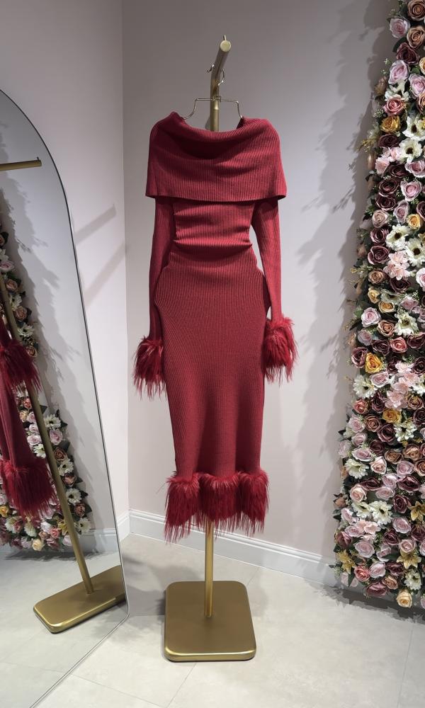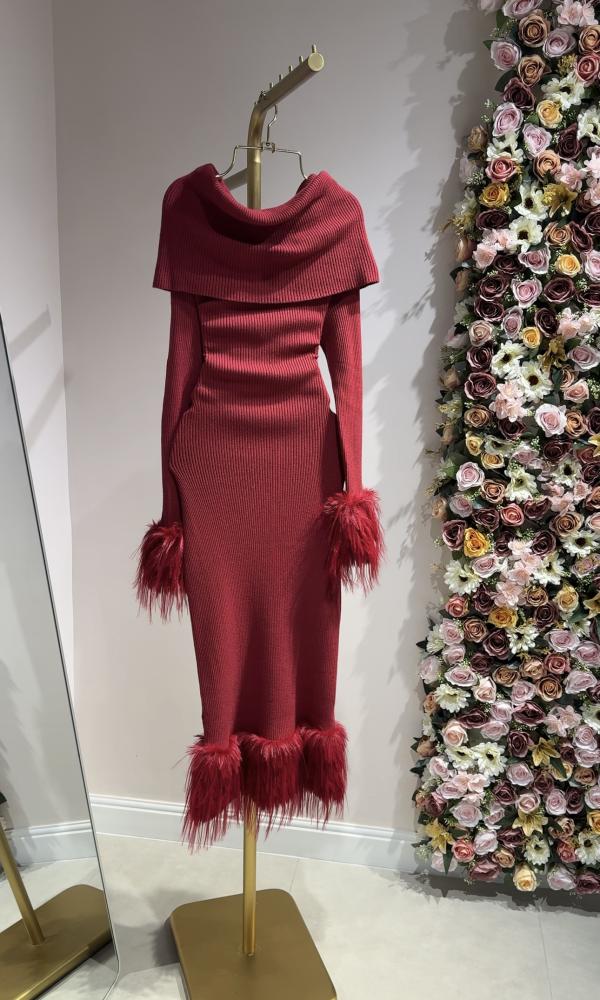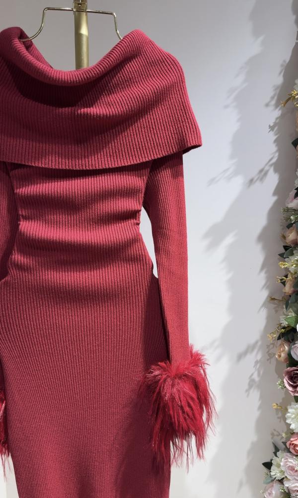 فستان أحمر شتوي