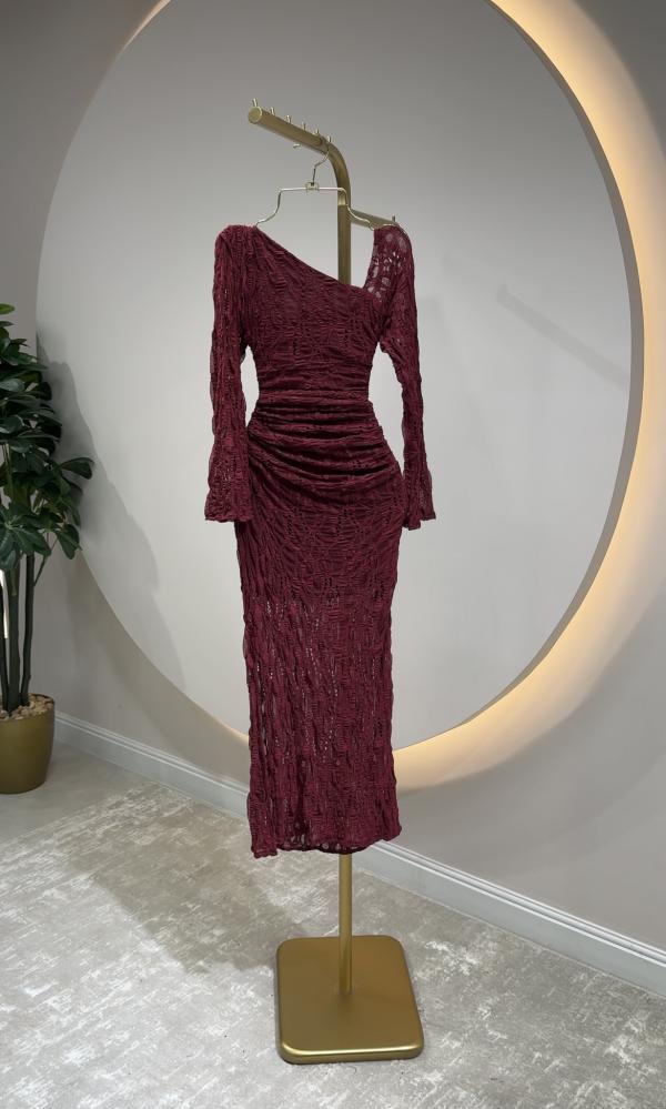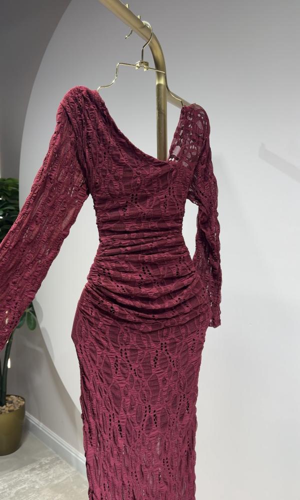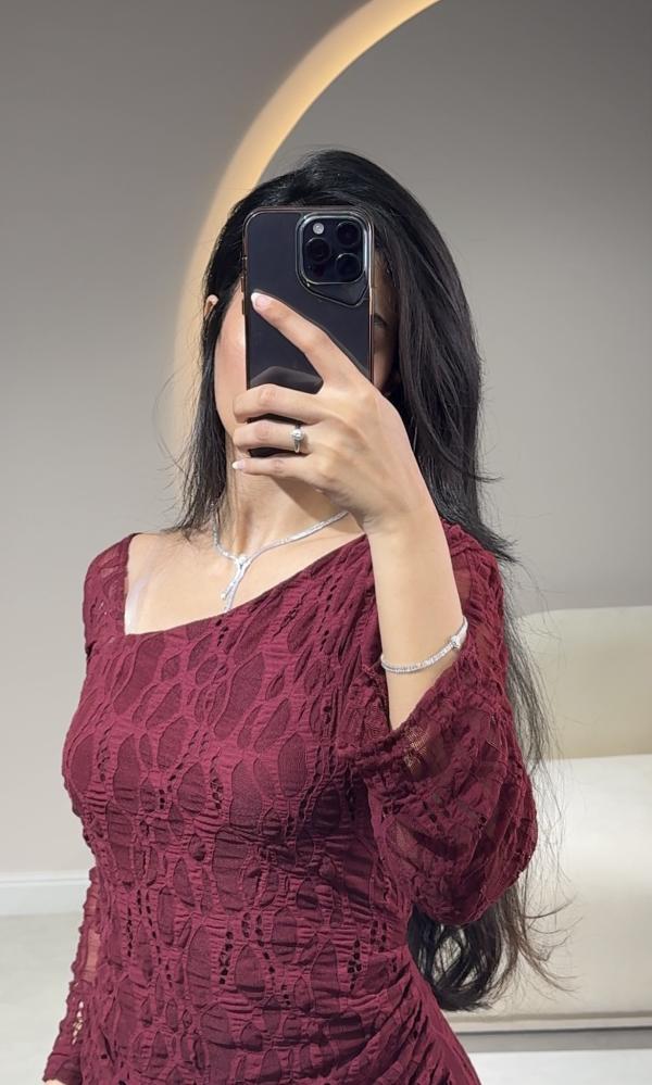 فستان ميدي بتصميم ضيق أنيق وفخم، مصمم من قماش دانتيل فاخر.