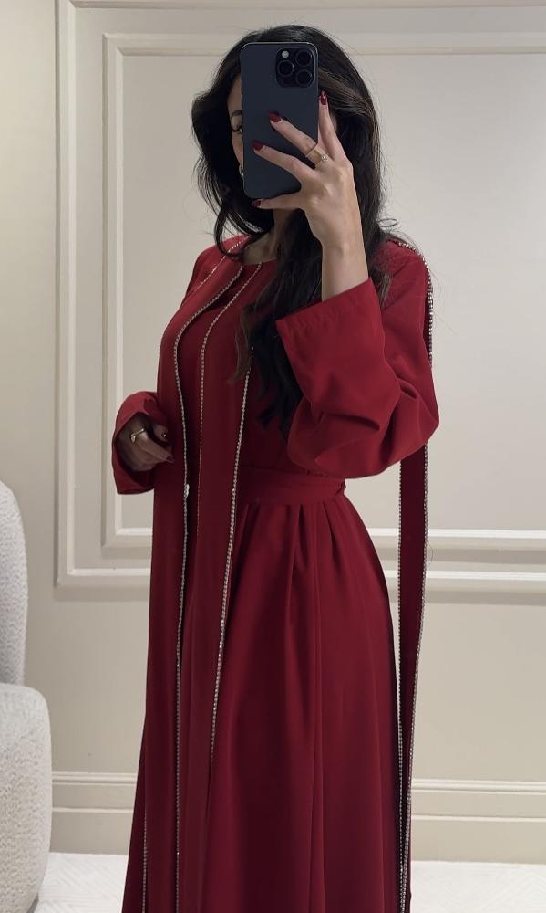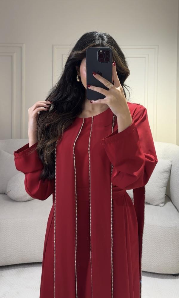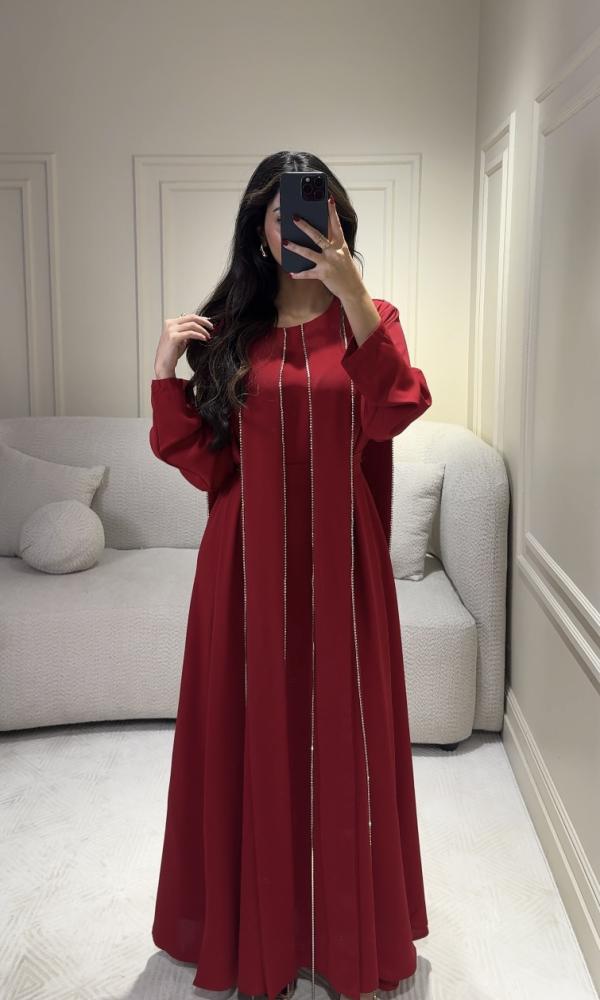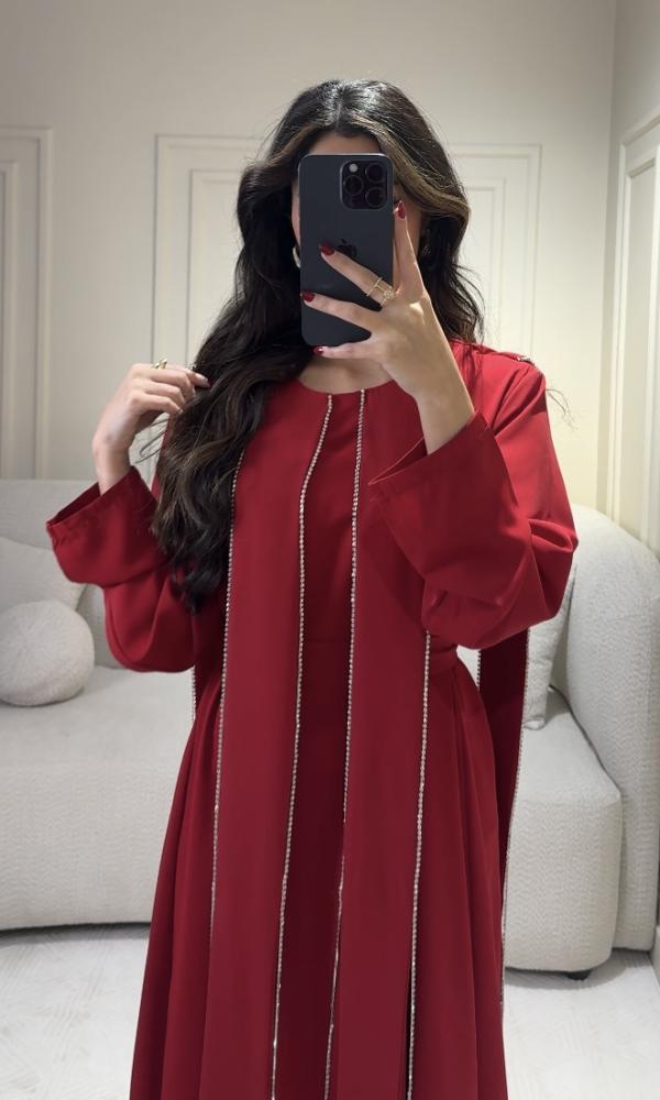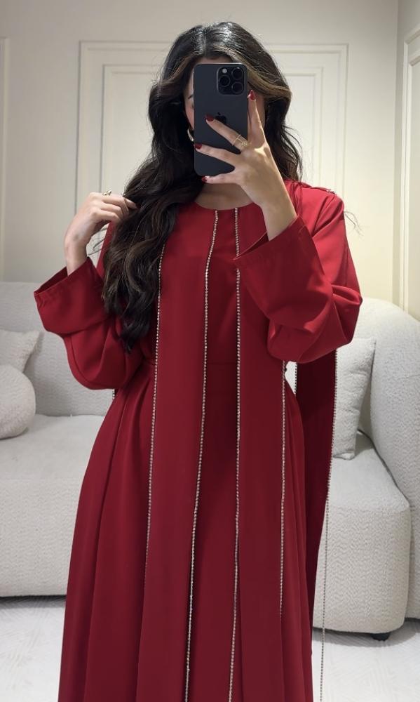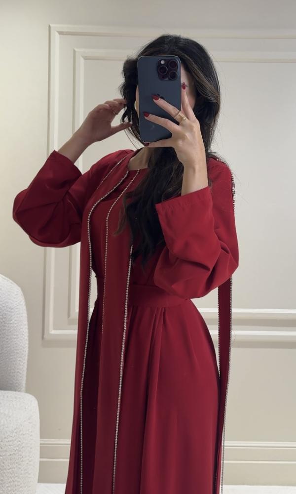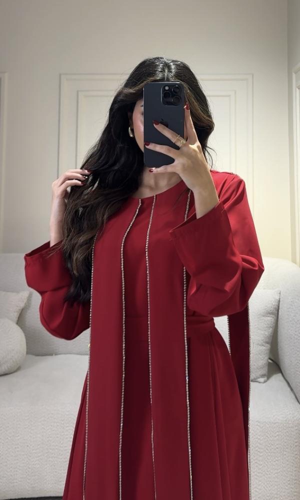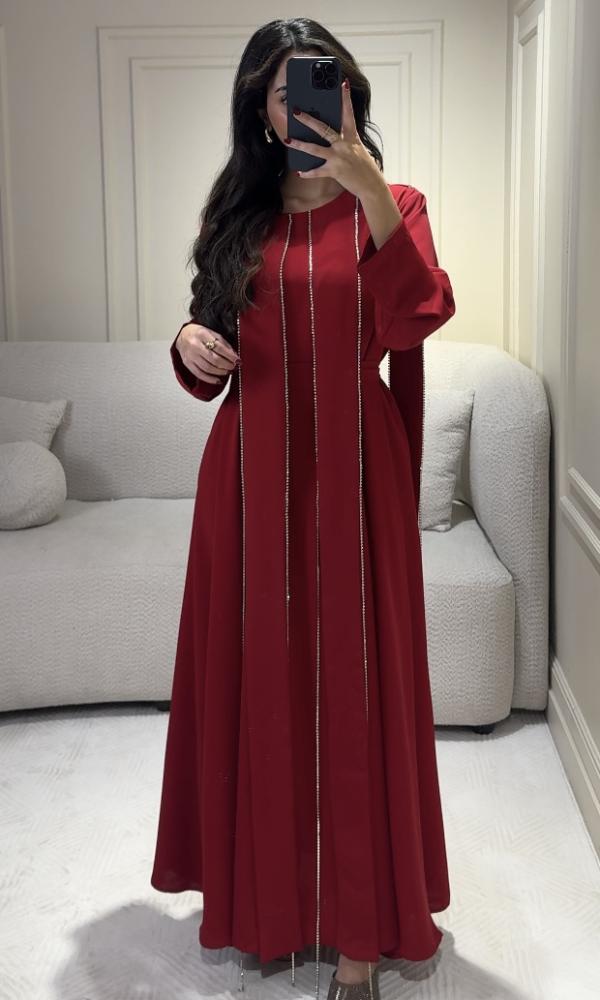 فستان احمر ملكي فخم بتفاصيل مطرزة