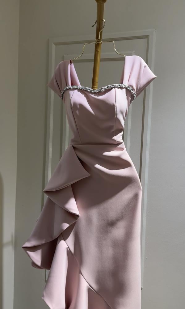 • طول الفستان الجهة الطويلة 130 - 50 انش الجهة القصيرة 106 سم - 41 انش