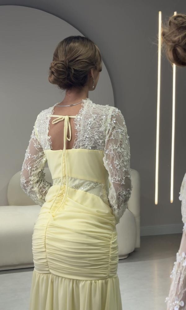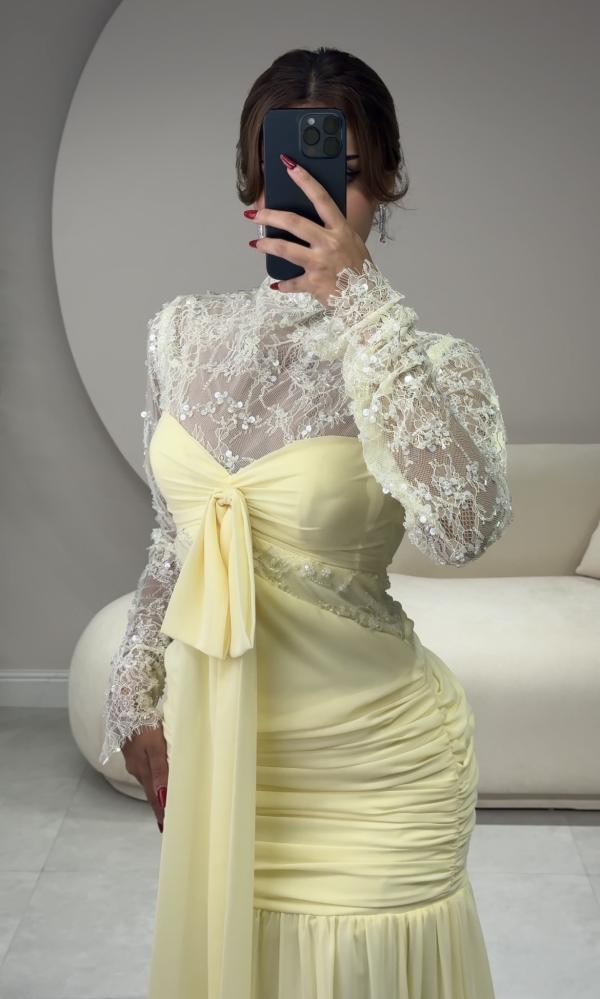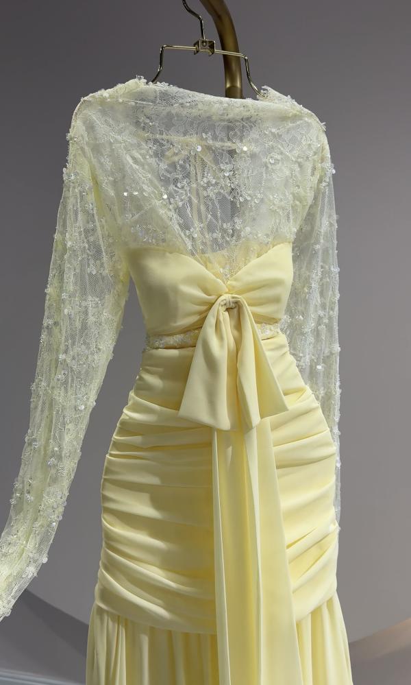 فستان أنيق يجمع بين النعومة والأنوثة، يتميز بتصميم جذاب بطابع كلاسيكي رقيق. يناسب السهرات الراقية والمناسبات المميزة.
