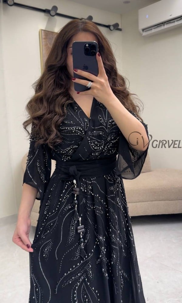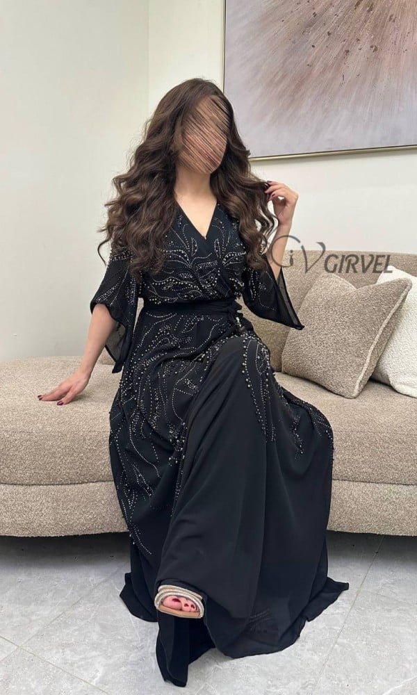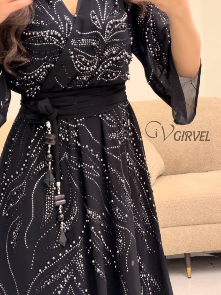 فستان طويل بتطريز من خرز والفصوص الكامله